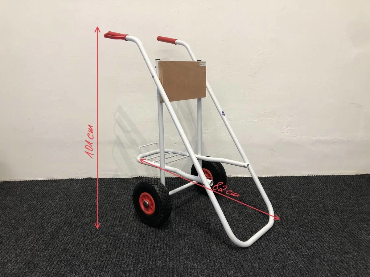 Extrem leichter, starker und stabiler Außenbordmotor Trolley mit einem Aluminiumrahmen und Gummibänder. Ausgestattet mit einer Halterung für den Kraftstofftank.