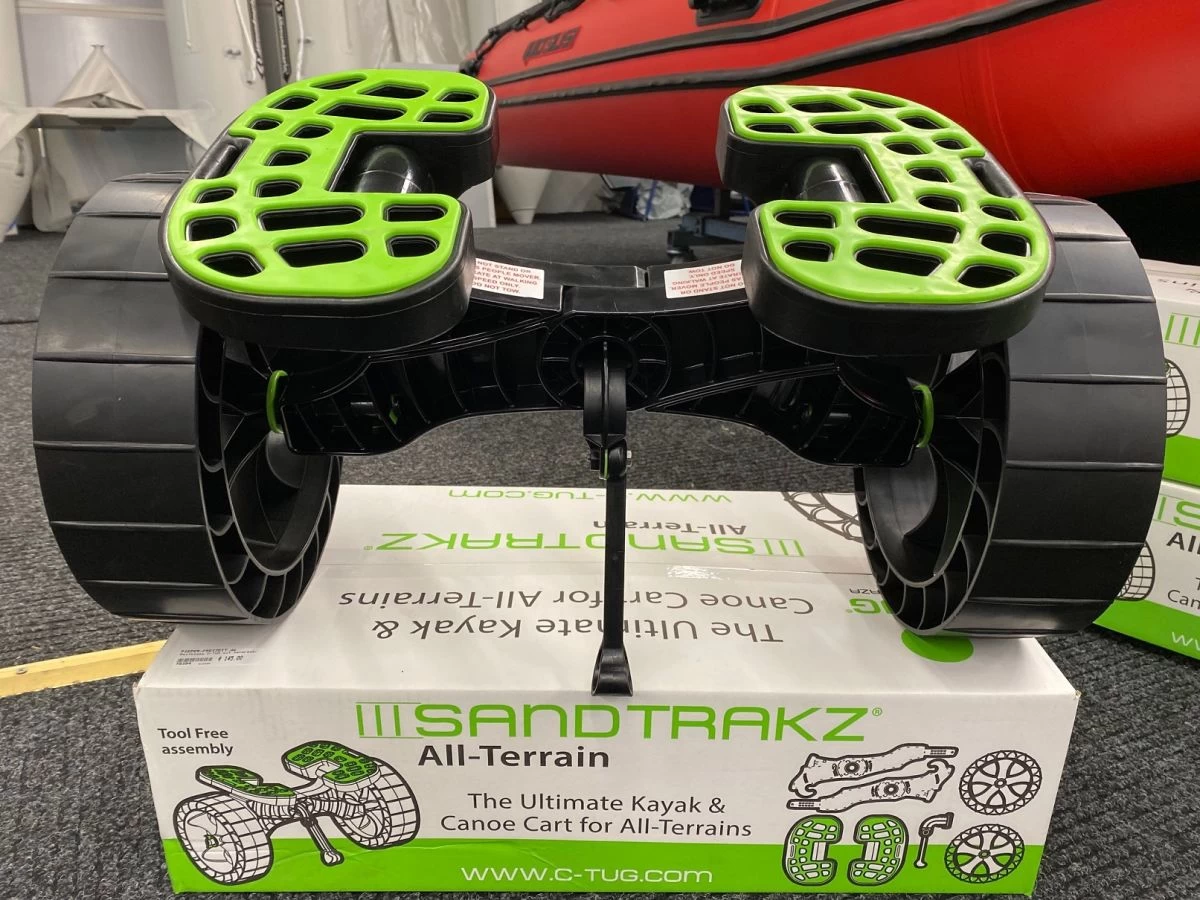 Der neue RAILBLAZA C-TUG Transport-Rollwagen mit Sandrädern ist für Kajaks, kleinere Schlauchboote, Surfbretter, SUP’s der Hit.