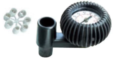 Anzeige bis 1000 mbar (14,7 psi). Mitgelifert werden verschiedene Ventiladapter.